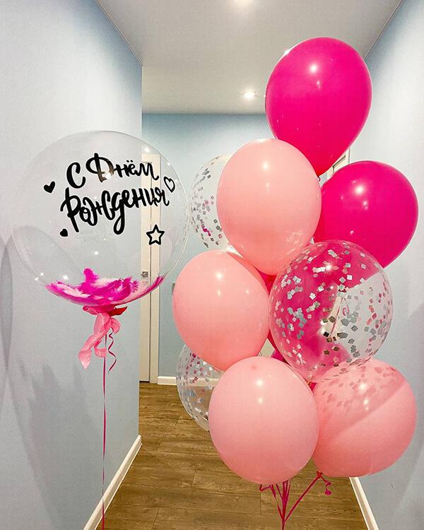 Шар с перьями и индивидуальной надписью